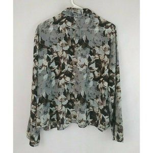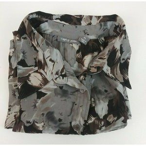 Apt 9 Petite Gray, Brown, & Black Floral Button Up Sheer Silky Blouse Size PL
