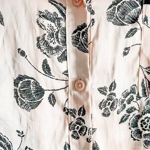 Apt. 9 Pink & Black Floral Silky Long Sleeve Button Up Pajama Top Large