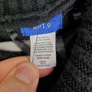 Elevate your casual or workwear outfit with this stunning Apt. 9 poncho. The black sequin knit fabric boasts a solid pattern and a cowl neckline, giving it a classic and elegant look. The 3/4 sleeves add a touch of sophistication, while the comfort and stretch features make it perfect for the fall and winter seasons. This one size fits all sweater is made of a blend of polyester and acrylic materials, making it machine washable and easy to maintain. Its regular fit and pullover style make it suitable for any occasion, whether it's a day at work or a casual outing. Don't miss out on this versatile and stylish addition to your wardrobe.