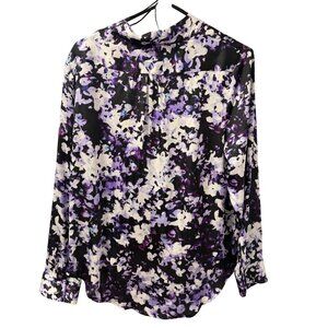 Apt. 9 Purple Black Floral Long Sleeve Faux Wrap Blouse Size L Top