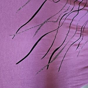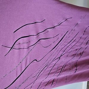 Apt. 9 Purple Short Sleeve Tee with Black and Glitter Silver Design