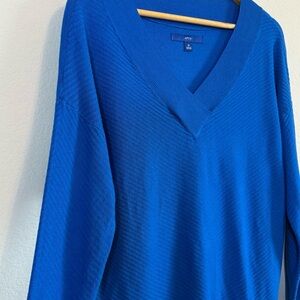 Apt 9 Royal Blue V Neck Ribbed Long Sleeve Casual Blouse Top Longline Size Med