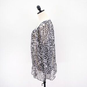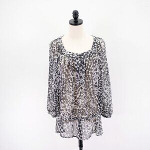 Apt. 9 Sheer Black White Pearl Button Front XL Blouse Top Long Sleeve Polyester