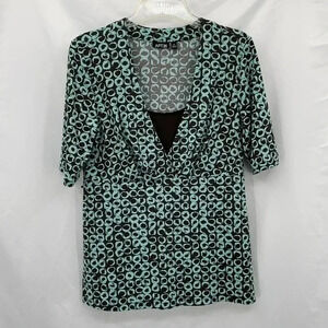 Apt 9 Short Sleeve Top Medium Blue Brown Patterned V-neck