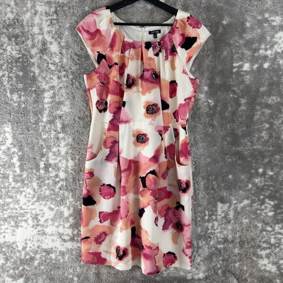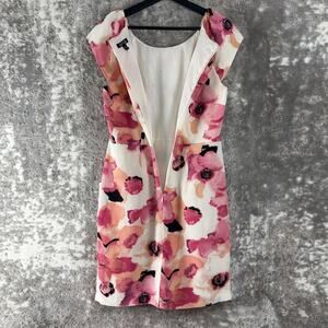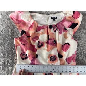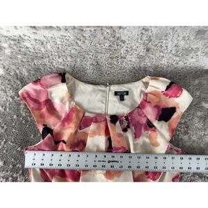 Apt 9 Size 12 Floral Print Pleated Mini Fit Flared Dress Cap Sleeve Zip Pink