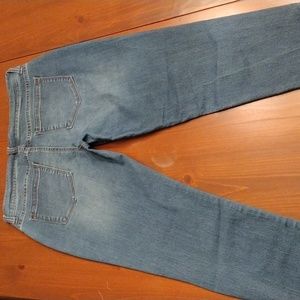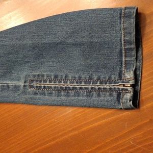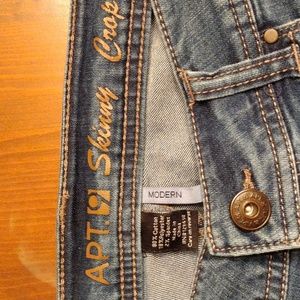 Apt. 9 Skinny Crop Modern Jean with Ankle Zippers, Mid wash Blue, Size 6. Made from 80% Cotton, 18% Polyester and 2% Spandex. Measurements taken while lying flat: Waist- 16", Front Rise- 8.5", Rear Rise- 13.5", Inseam Length- 25.5". These are in EXCELLENT PRE-OWNED Condition.