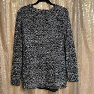 Apt. 9 Sparkly Black Silver Double Layered Sequin Long Sleeve Sweater, Large