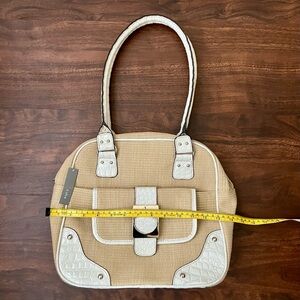 Apt. 9 Straw Hand & Shoulder Bag With White Faux Leather & Silver Buckle Bag NWT