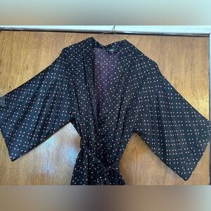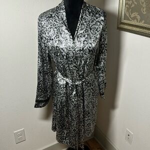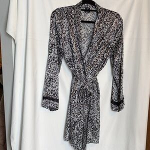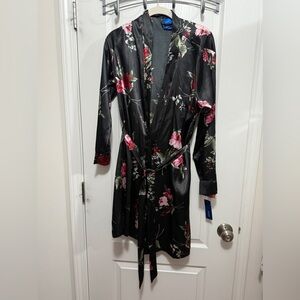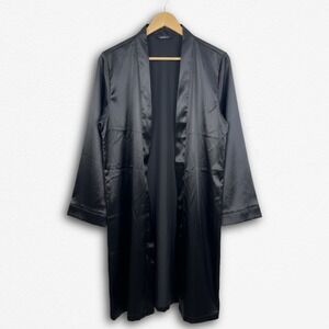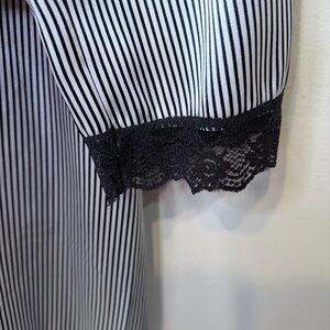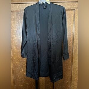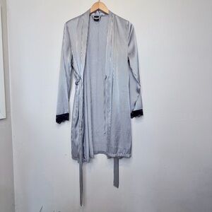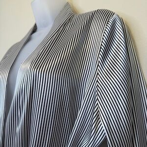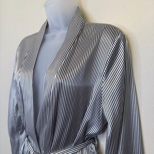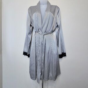 Apt 9 Stripe Satin Lace Wrist Details Long Sleeve Open Front Belted Soft Luxe Relaxed Comfy Cozy Cozycore Flirty Romantic Feminine Coquette Witchy Witchcore Whimsy Goth Cute Goth Mobwife Laced Up Vamp Romantic Valentine's Day Soft Girl Scandi Girl Baddie Glam Chic Moira Rose Lingerie Coat Kimono Jacket Mini Robe
