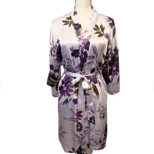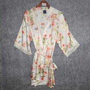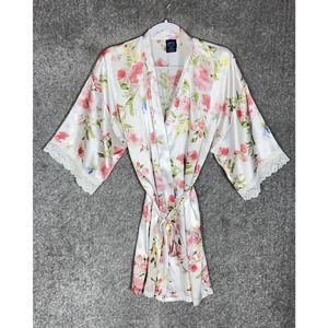 Apt. 9 | Striped Satin Lace Cuffs Open Front Belted Mini Robe