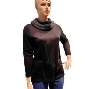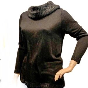 Apt 9 Sweater Tunic & Cowl Scarf Plus 1X Black w/ Silvery Threads on Cuffs & Hem