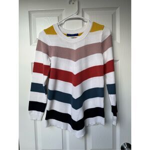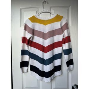Apt. 9 Sweater XS Women's Chevron White Multicolor Crew Pullover Knit