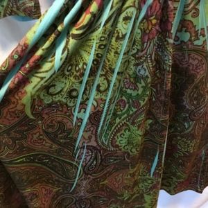 Apt 9 Sz M Blue Brown Dress Ring Chest Sublimation V neck 3./4 Sleeve 34" length collar to hem