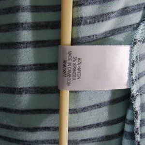 This Apt. 9 blouse features a stylish teal and black striped pattern, with short sleeves and a round neckline. The closure is a convenient pullover style, and the fit is relaxed for maximum comfort. Made from a blend of spandex and rayon materials, this blouse has a soft and lightweight feel. The fabric type is rayon, making it perfect for wearing on warmer days. Ideal for any casual occasion, this Apt. 9 blouse is a must-have for your wardrobe.