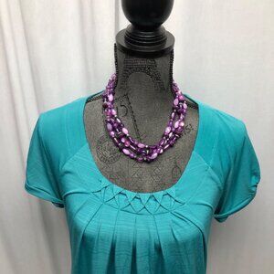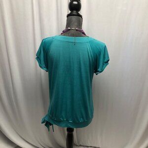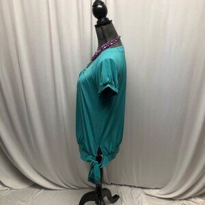 Apt 9 Teal Short Sleeve Top Womens Size Medium Side Tie Pleated Front Stretchy