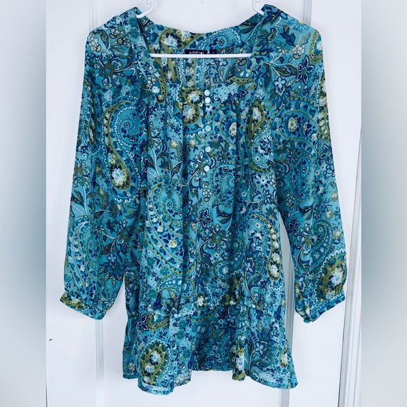 Apt. 9 Teal and Olive Patterned Skirt Sz Medium