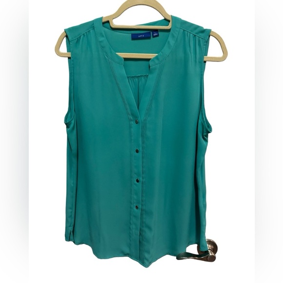 Apt 9 - Teal polyester V-Neck Button Front Top - Size L