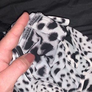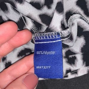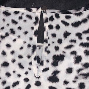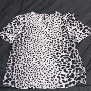 Black and white animal print Apt. 9 top. Excellent used condition- no stains, holes, or tears. There are ruffles on the inside of the shoulders (as pictured) that give a slight shoulder pad appearance. Smoke free home.