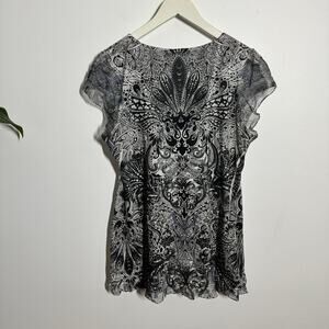 Apt 9 Top Women L Black White Y2K Bedazzled Grunge Emo Boho Sheer Cap Sleeve