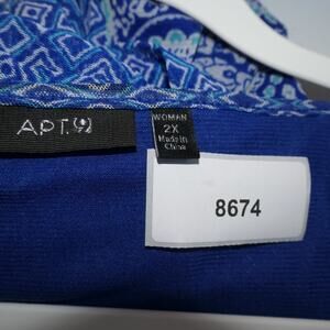 Apt 9 Tunic Mesh Blouse Womens 2X Blue Floral Lined Artsy Stretchy Career Boho