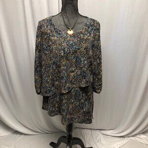 Apt 9 Tunic Womens Size Medium Black Multicolored Speckled Layered Blouse Top