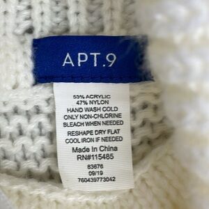 Apt. 9 Turtleneck Open Side Poncho Cream Tan Beige One Size Fits Most. Great preowned condition. Sides are open, textured. Please see photos for approximate measurements and details. Item may show difference in color based upon photography and perception. Photos are part of the description, as everyone’s level of condition may vary. From smoke free and pet free home. All packages are shipped the same or next business day.