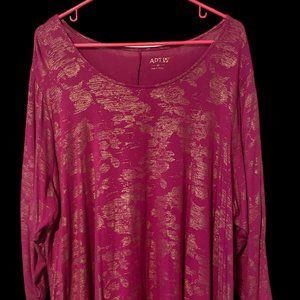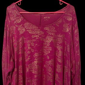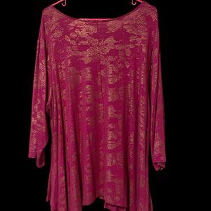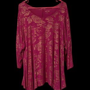 Apt. 9 Vibrant Pink & Gold Abstract Design Sharkbite Tunic Pullover Top Size 2X
