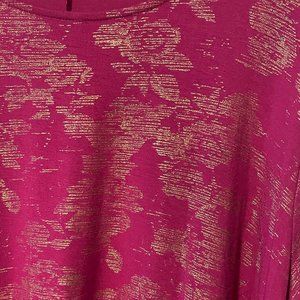 Apt. 9 Vibrant Pink & Gold Abstract Design Sharkbite Tunic Pullover Top with 3/4 length sleeves.