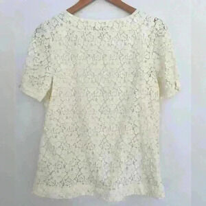 Apt. 9 Lined Square Neck Short Sleeve Lace Blouse in Ivory Medium Cotton Blend Vintage