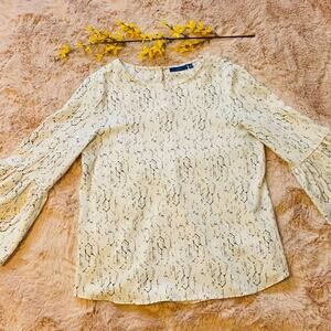 Apt. 9 White Abstract Print Bell Sleeve Lightweight Career Blouse Size: Med