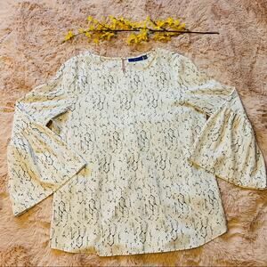 Apt. 9 White Abstract Print Bell Sleeve Career Blouse