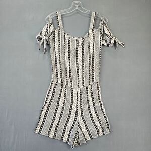 Apt 9 White Black Romper Floral Striped Shorts Jumper Cold Shoulder Women Size M