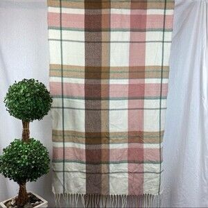 Apt 9 White & Tan Plaid Gingham Rectangular Tassel Trim Soft Scarf