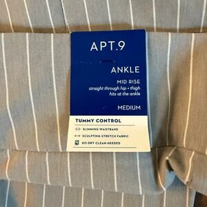 Apt. 9 Women Grey White Striped Trousers Slacks Size Medium Ankle Skinny NWT