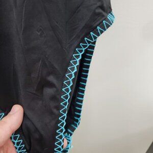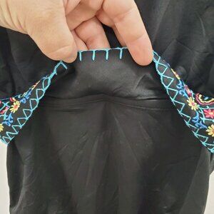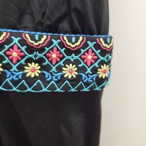 Black base w/ contrasting multicolor boho style embroidery