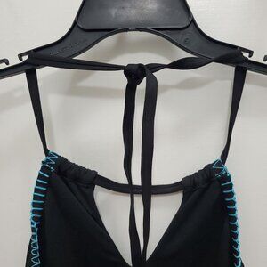 Apt. 9 Women's Black Boho Embroidered High Neck Halter One Piece Swimsuit Size M