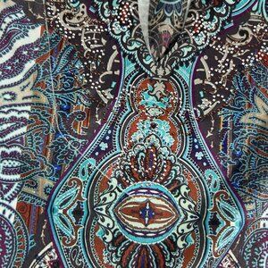 Apt 9 Womens Blouse Top Size Small Green Brown Paisley Embellished 3/4 Sleeves Pullover Hippycore Polyester in very good preowned condition.