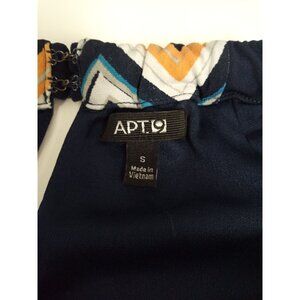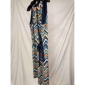 • Apt 9 Blue Orange Zig Zag Printed Mini DressSleeveless Apron Neckline Hook Closure Tire at Waist Zig Zag Pattern Keyhole Neckline Measurement Lying Flat Pit 2 Pit 16in Dress Length 37.5in RN 73277