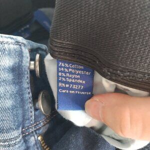 > Material: 76% cotton, 14% polyester, 8% rayon, 2% spandex
