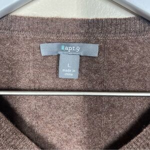 Apt. 9 Womens Brown Vneck 100% Cashmere Long Sleeve Sweater Size Large