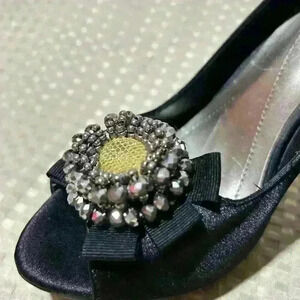 Apt 9 Womens Cindy Black Rhinestone Flower