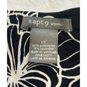 Apt 9 Women’s Flare Skirt Plus Size 1X Black White Floral Pull On Cottage Art