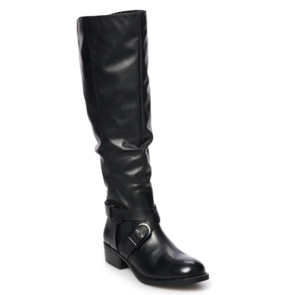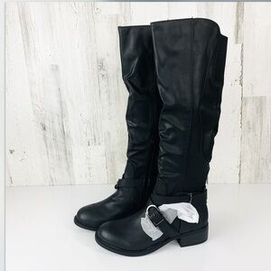 These Riding boots are Brand New In The Box. Box has some ware. Boot has Slouch shaft withBuckle overlay. It Is CONSTRUCTED with Manmade upper and Fabric Lining. Has A Round toe With Zipper closure and Padded footbed.