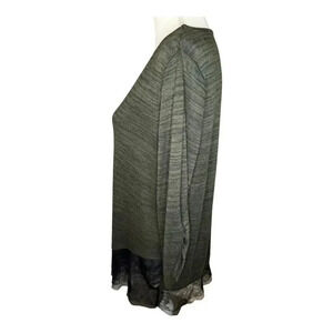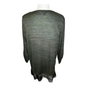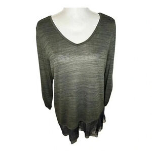 Apt. 9 Women’s Large Green Ruched Sleeve V-Neck Tunic With Black Mesh Hem