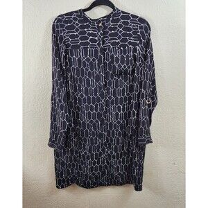 Apt 9 Womens M Black White Geometric Long Sleeve Button Up Belted Dress. No flaws please see pictures for details.