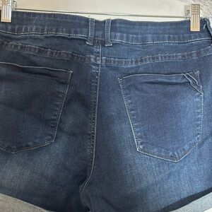 Chic dark blue jean shorts with rolled hem. Perfect for everyday wear. Classic five-pocket style. Size 12
