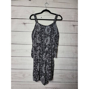 Apt. 9 Womens Romper Playsuit Black Tribal Print Pockets Jewel Neck Rayon M