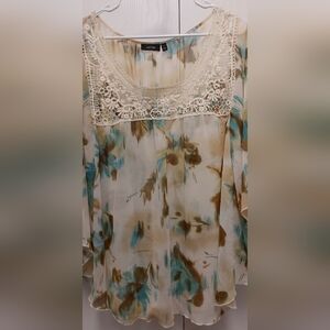Apt 9 Women's Sheer Floral Crochet Boho Blouse Batwing Size 1X
