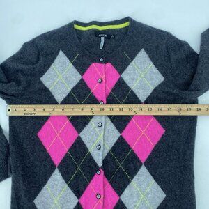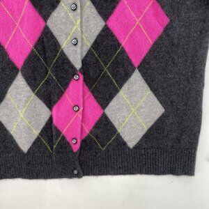 Apt 9 Womens Size XL Gray Argyle 100% Cashmere Cardigan Button Up Sweater