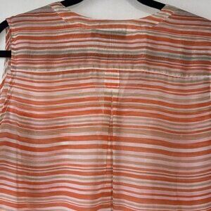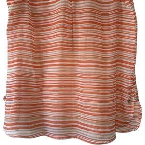 This lightweight sleeveless blouse features a vibrant striped pattern and button-front design, offering a stylish and airy option for warmer days.